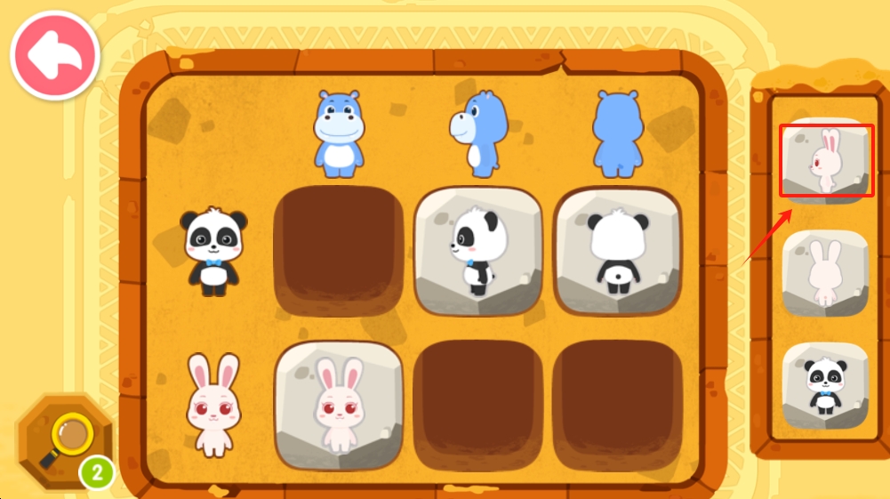 2、在拼图界面,找到缺失的动物图案,点击右侧边栏中的空白方块填充图案。