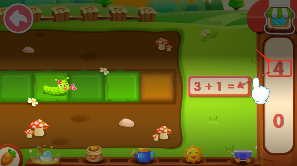 3、在数学关卡中,计算3+1的结果,并点击右侧边栏中的数字4来选择正确答案。