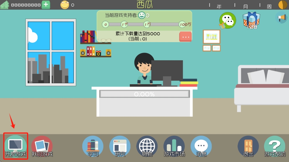 2、在主界面点击“开发游戏”图标,开始新的游戏项目。