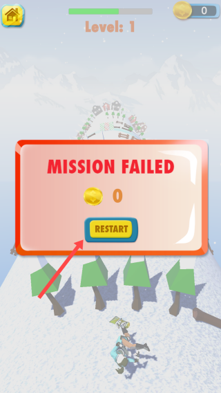 3、若出现【MISSIONFAILED】提示,点击【RESTART】按钮重新开始游戏。