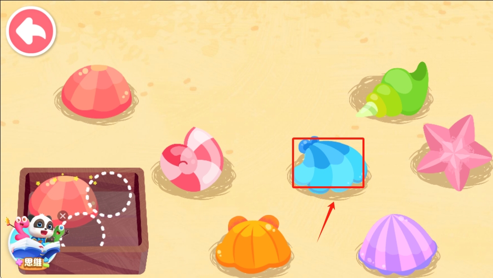 1、在沙滩上,点击蓝色的珍珠项链图案,开始收集制作珍珠。