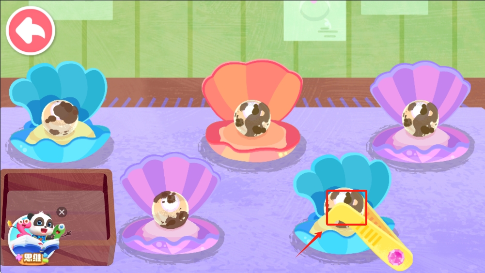 2、进入室内,点击贝壳中的珍珠,将它们收集到托盘上,准备下一步。