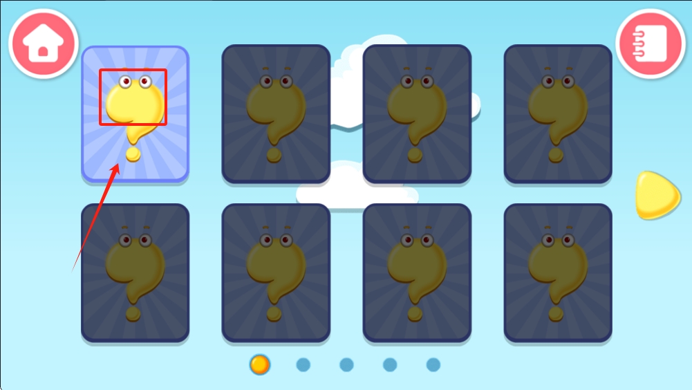 1、在选项界面,点击第一个问号卡片,开始选择谜题。