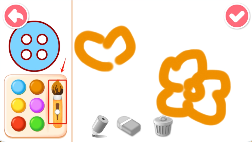 2、动手绘制图案:使用虚拟画笔、印章等工具完成作品,系统会实时提示轮廓比例,帮助低龄儿童掌握基础绘画技巧。