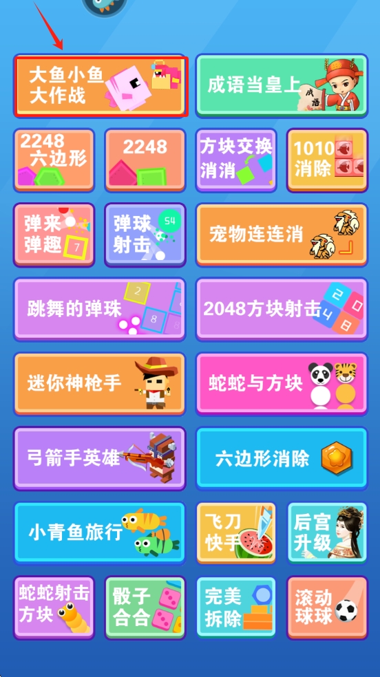 1、点击选择“大鱼小鱼大作战”图标,进入游戏主页。