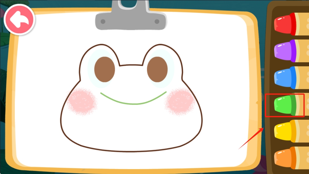 3、点击右侧绿色蜡笔图标,选择颜色为青蛙轮廓上色。