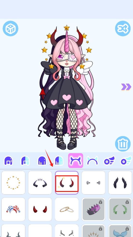 3、点击下方的“角饰”选项卡,然后选择喜欢的角饰为角色添加独特装饰。