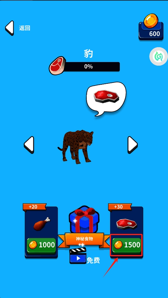 4、使用金币购买食物,升级你的动物,提升游戏表现。