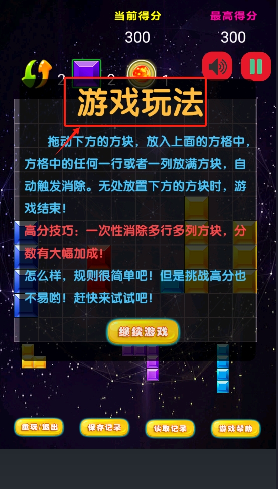 3、策略组合:关键在于巧妙利用方块的不同形状和颜色,不仅要解决眼前难题,更要为后续下落的方块创造连消和高效清除的机会。