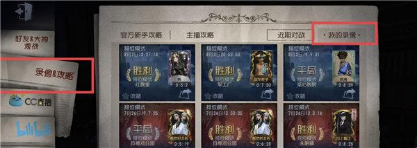 2、开启保存录像后,保存键会出现在结算页面的左上角,如果开启自动缓存,战绩里也可以保存,保存录像后,在右下角书本-旧闻新绎-录像and攻略-我的录像查看