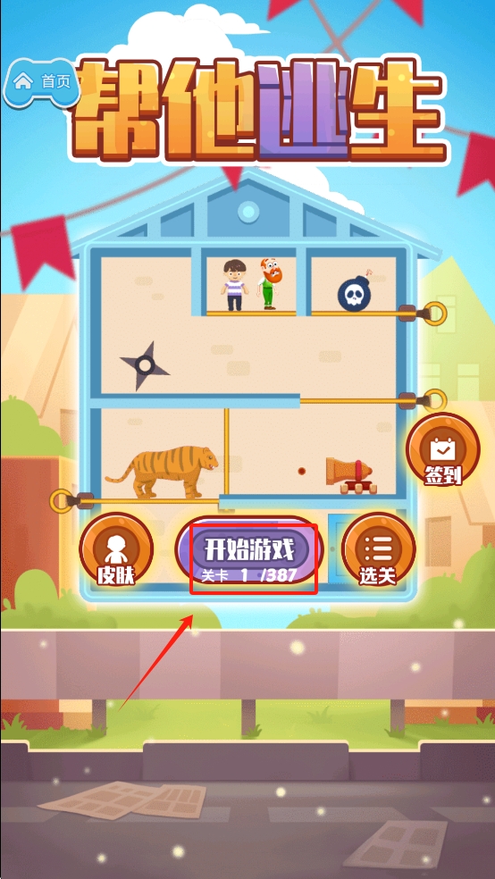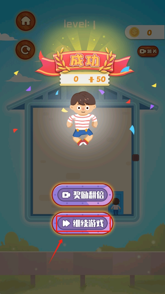 3、成功帮助角色逃生后,点击“继续游戏”按钮,进入下一关卡或结束游戏。