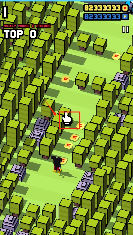 2、点击屏幕控制角色移动,避开障碍物和车辆。