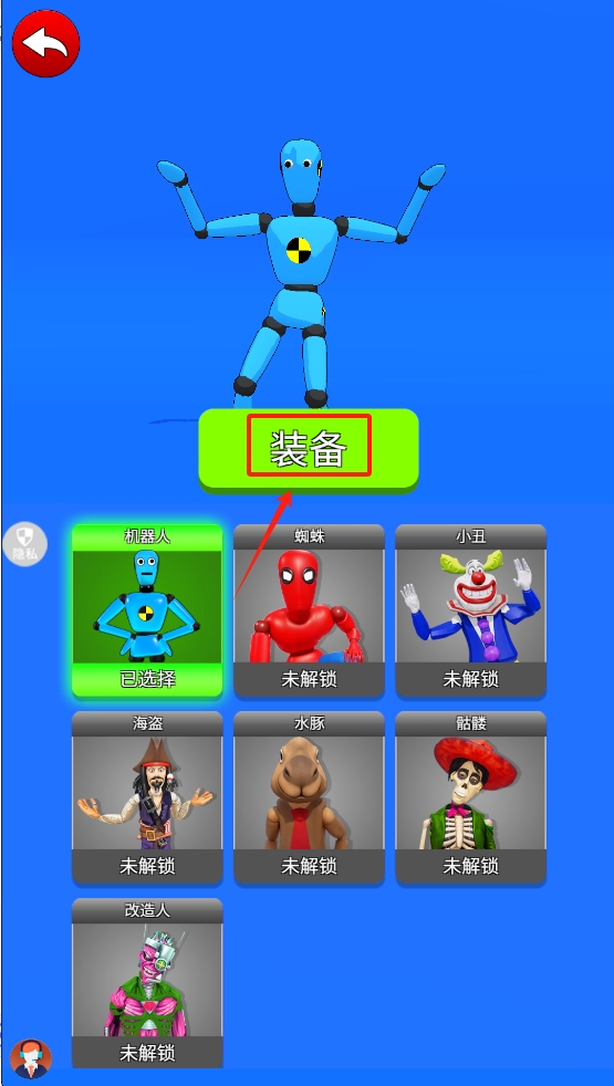 4、在角色选择界面,点击“装备”按钮,使用该角色进行战斗。