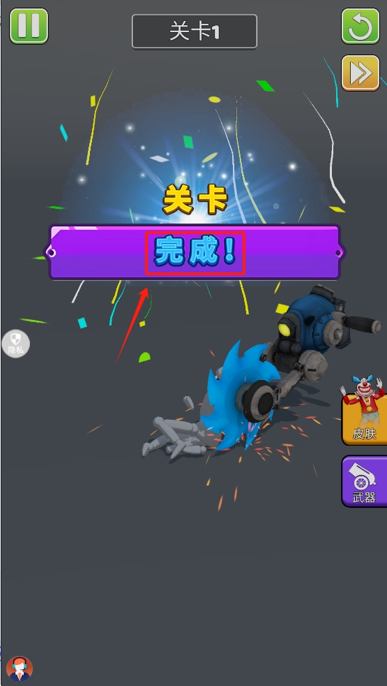 3、完成关卡后,会显示“关卡完成”。完成关卡可以获得奖励。