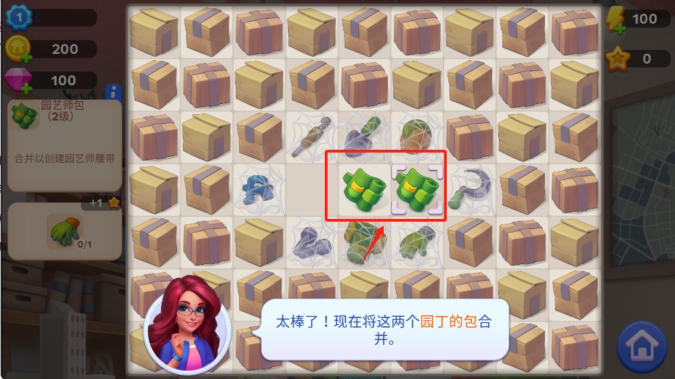 2、合并与升级:将两个相同物品拖到一起合并,生成更高等级的工具,如锤子、园艺剪或材料,如高级油漆、装饰品。