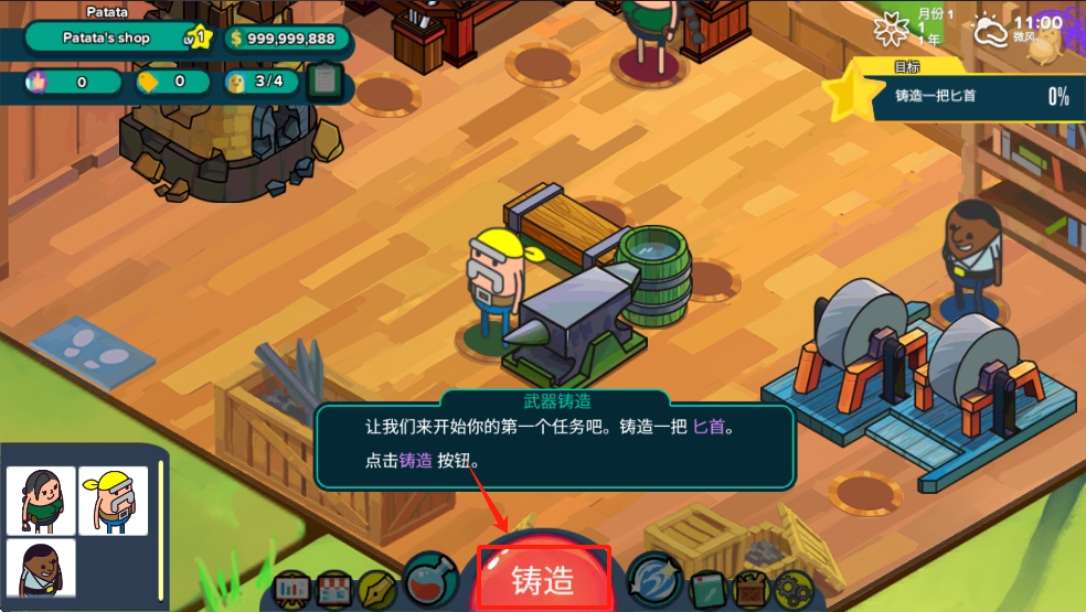 1、在游戏场景中,点击“铸造”按钮进入武器铸造界面。这是制造武器的起点。