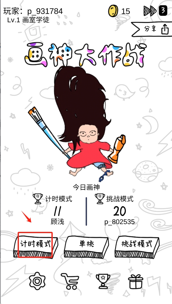 1、在游戏主界面,点击“计时模式”按钮,进入绘画模式开始游戏。