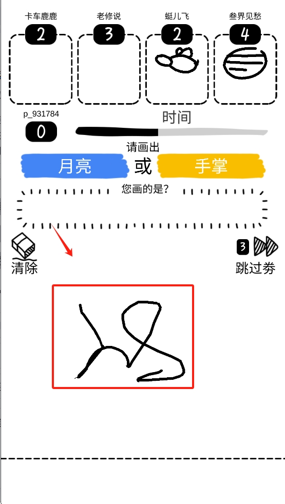 2、在绘画界面,根据提示画出指定图案,如月亮或手掌,完成后提交。