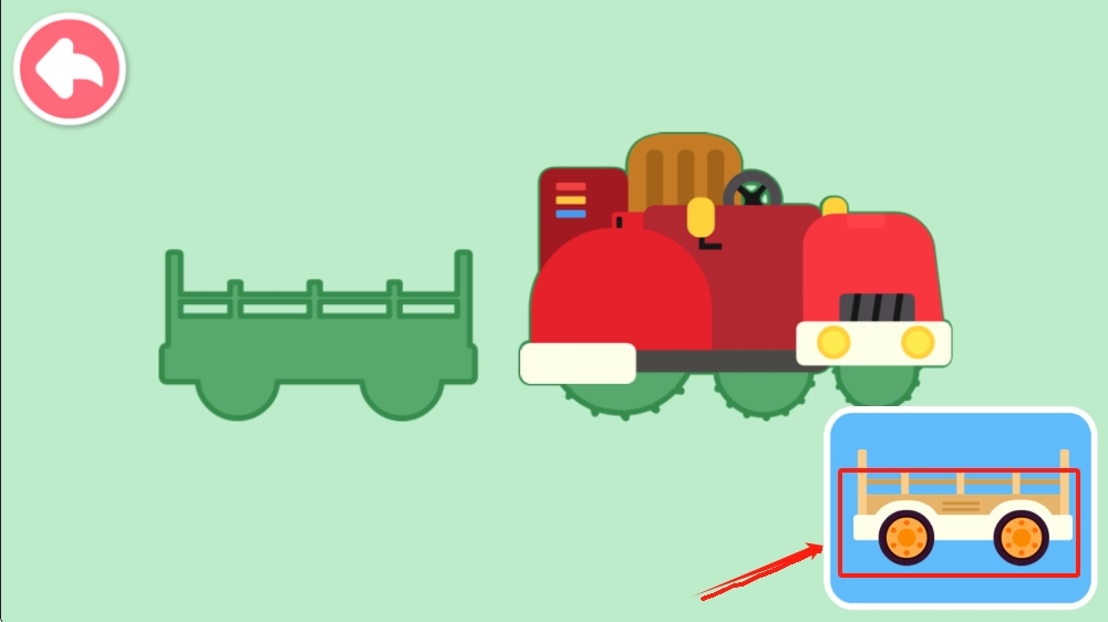 2、在拖拉机拼图界面,点击拖拉机车身部分,完成拼图。