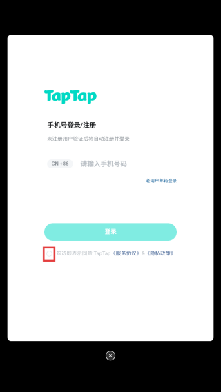 2、勾选下方【服务协议】和【隐私政策】条款。