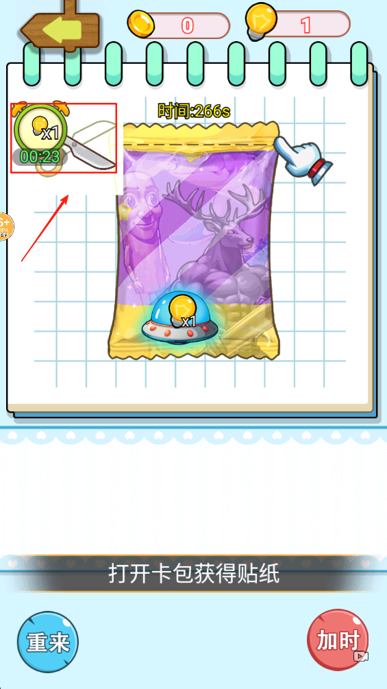 2、在游戏中,你可以通过点击剪刀图标来打开卡包,获取新的贴纸。