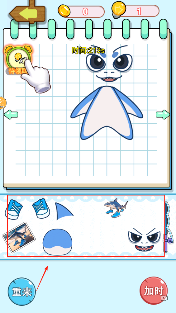 3、设计粘贴布局:根据目标图片的提示,将收集到的贴纸元素拖拽到画面底板上合适的位置,尝试还原或创造设计。