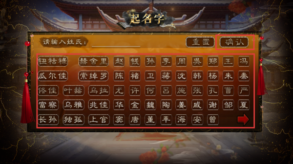 1、打开游戏,点击选择主角的姓氏,完成后点击【确认】。