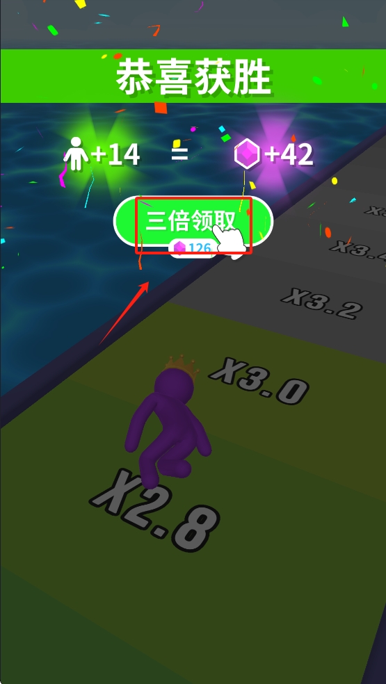 4、胜利后点“三倍领取”,再收“+42”奖励完成首关。