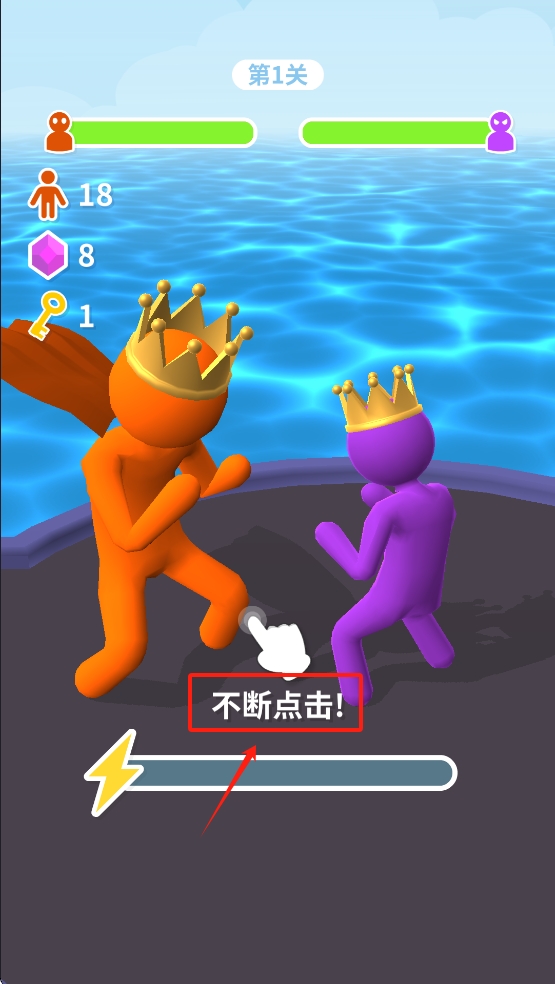 3、看到提示“不断点击!”时,持续快速点击屏幕累积能量条。