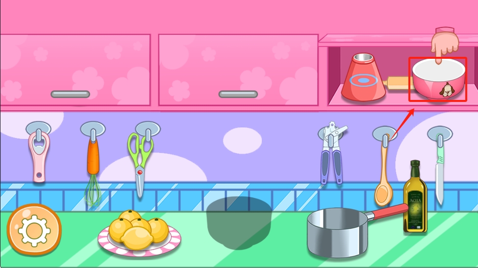 2、在色彩缤纷的游戏场景中,找出制作糖果必不可少的工具,点击“碗”拖至桌面。