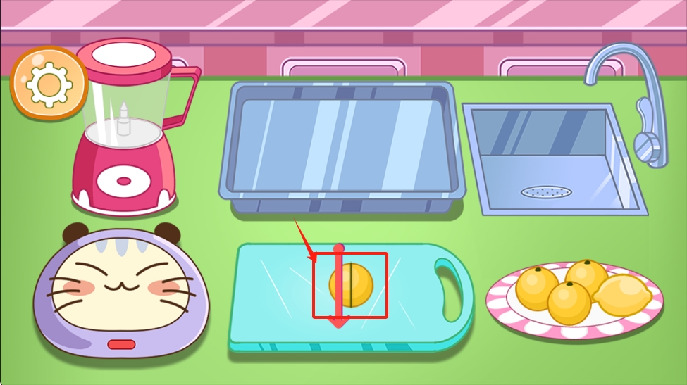 4、拖动柠檬到桌面,进行切除成小块,方便后面制作糖果使用。
