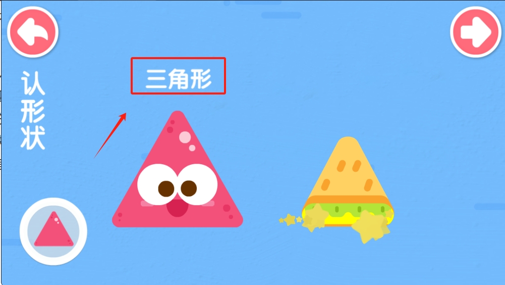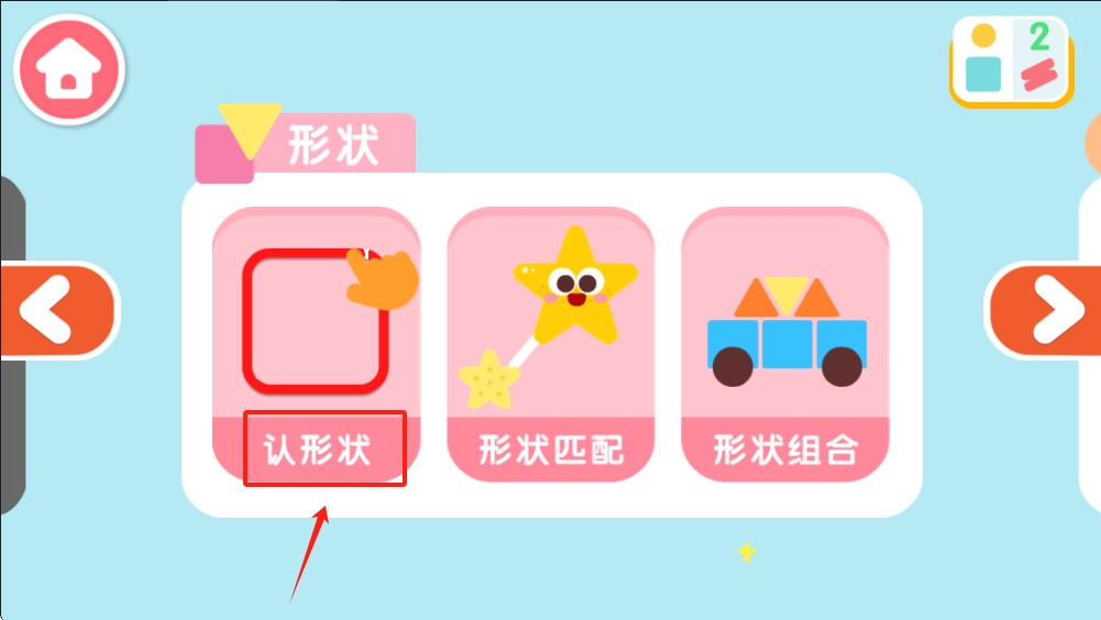 1、在形状选择界面,点击第一个 “认形状” 按钮,开始形状认知任务。