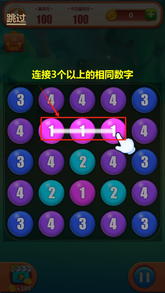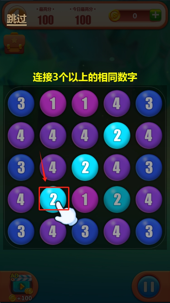 1、了解游戏规则,连接三个或以上相同的数字即可消除得分。