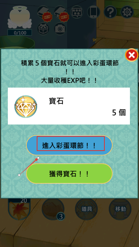 4、收集宝石,当收集到5个宝石时,点击“进入彩蛋环节”按钮,获取奖励。