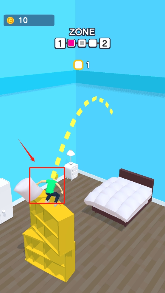 1、任务驱动机制:每关需在60秒内抵达发光床铺,途中收集散落的睡衣、枕头等家居物品可兑换稀有动作皮肤。