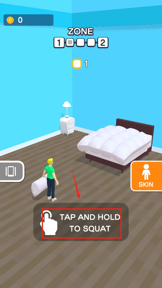 1、点击并按住屏幕使角色蹲下,以便在床下或低矮空间中移动。