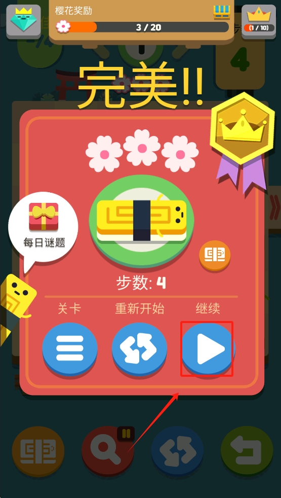 3、完成拼图后,点击“继续”按钮,进入下一关。