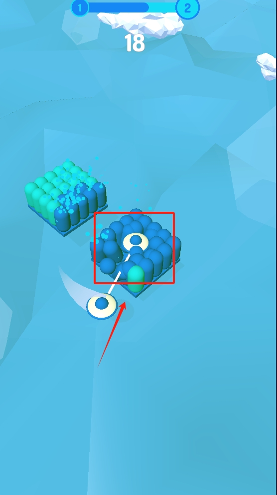 3、手指滑动控制发射方向,点击屏幕调整球体组合形态,长按蓄力实现精准抛射。