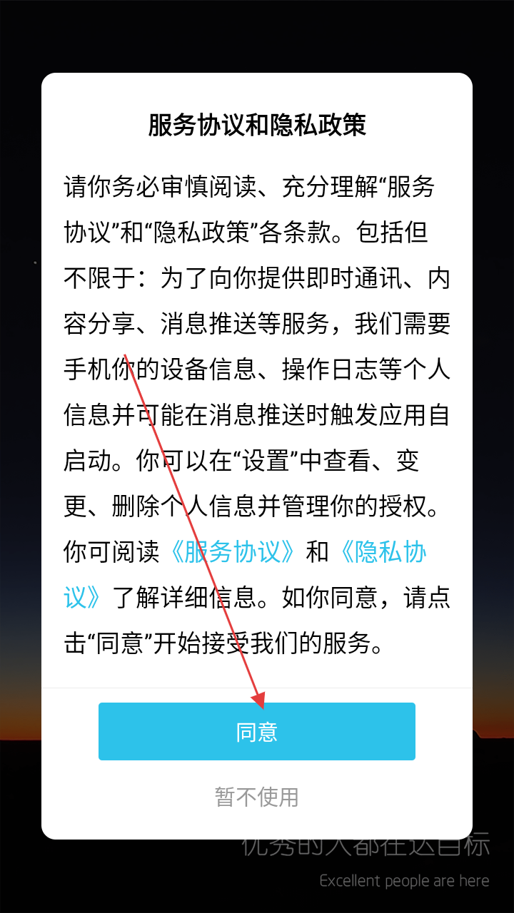 1、首次使用需阅读【服务协议和隐私政策】,点击【同意】方可继续操作。