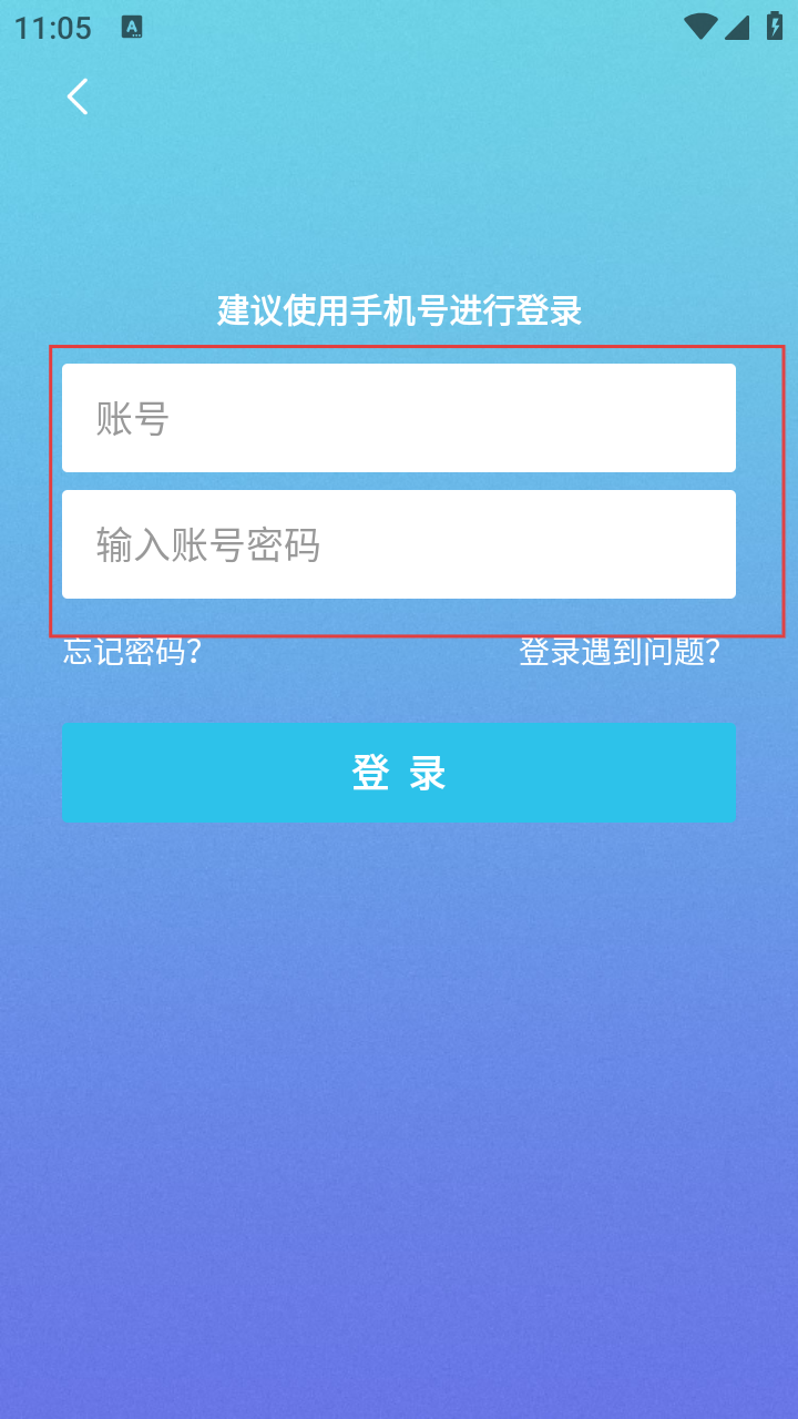 3、进入密码登录页,依次填入【账号】与【密码】,准备完成登录。
