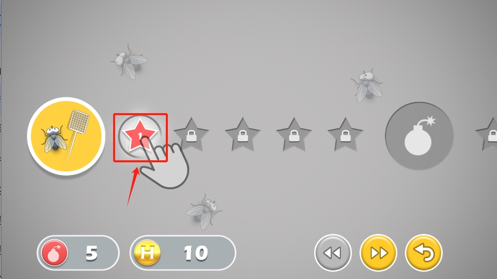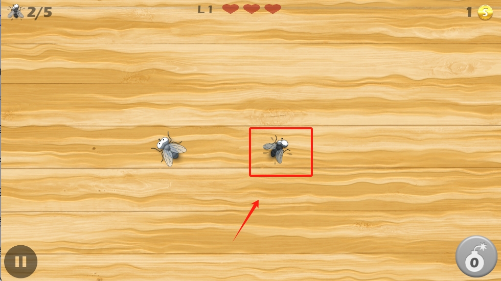 2、点击“关卡1”按钮,进入游戏内,开始打苍蝇。