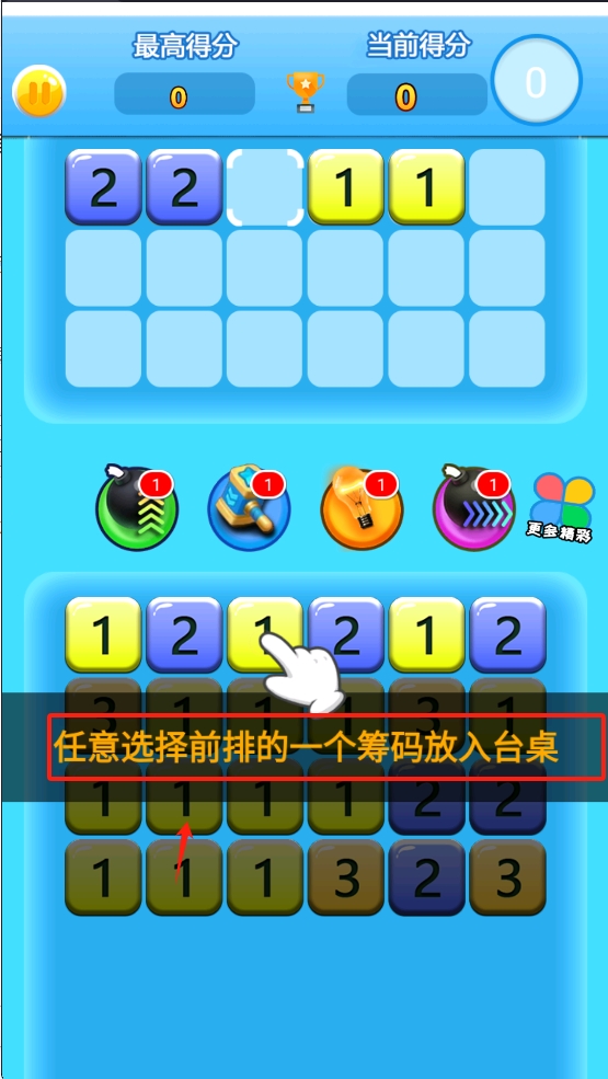 2、选择并放置筹码。点击前排筹码,然后选择一个空位放置,开始游戏布局。