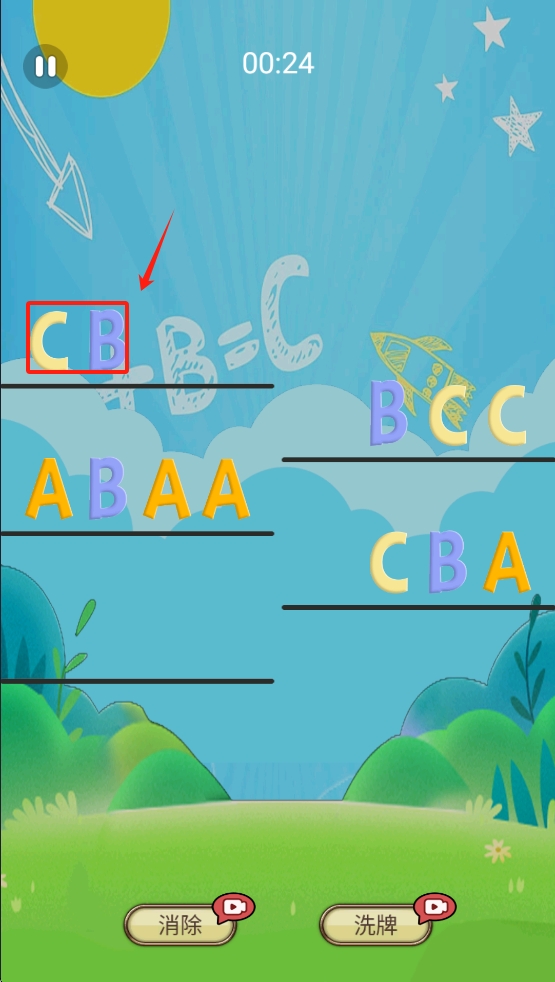 2、在游戏界面中,选择可以消除的字母组合,点击“消除”按钮进行字母消除。