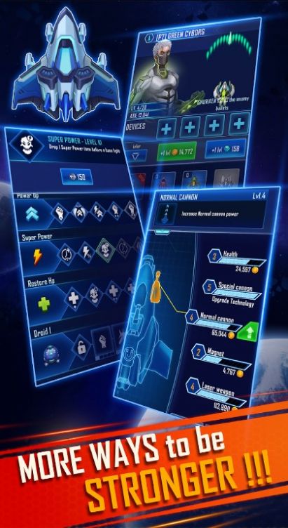 3、风之翼银河攻击游戏还配备了各种武器和能力。还可以根据自己的喜好选择武器。