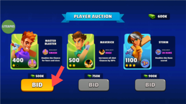 2、在【PLAYERAUCTION】界面中点击【BID】按钮参与球员竞拍。