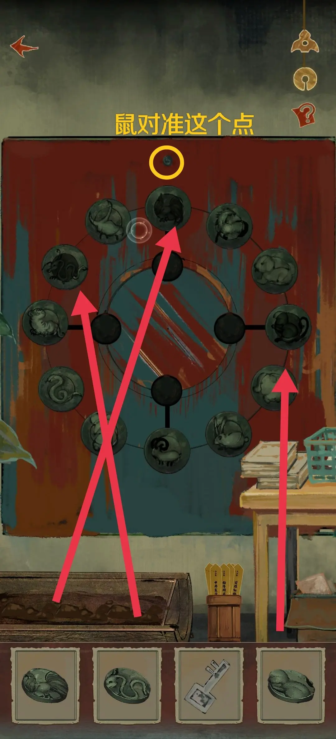 将符咒安装到对应的生肖上,旋转里外盘(不是转符咒,转符咒是转不动的)然后按照十二生肖的顺序排列,将鼠对准最上面的点(这里没截着完成图),就可以打开机关了。