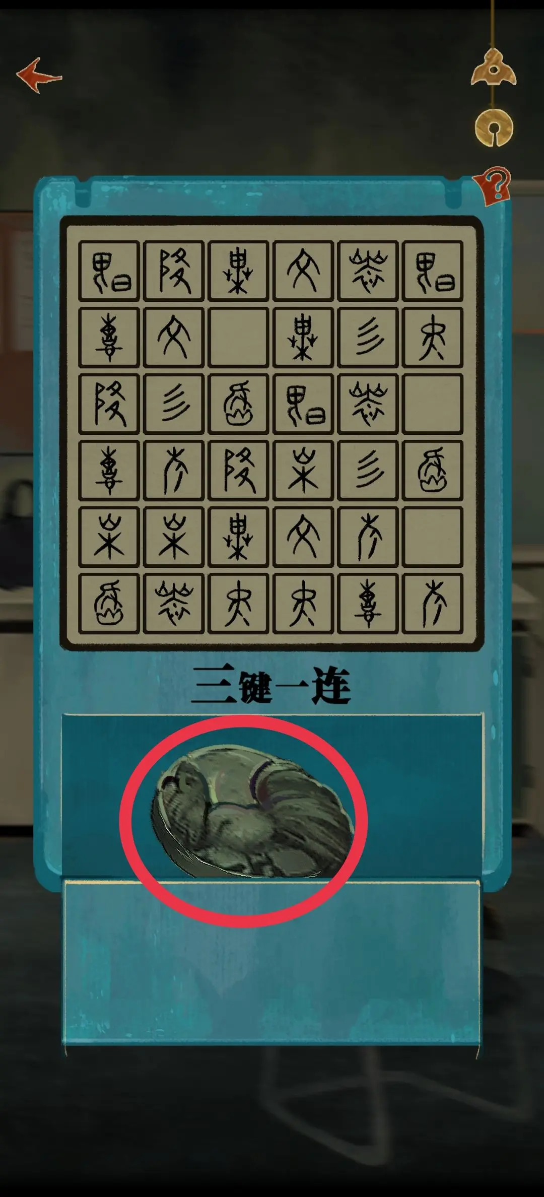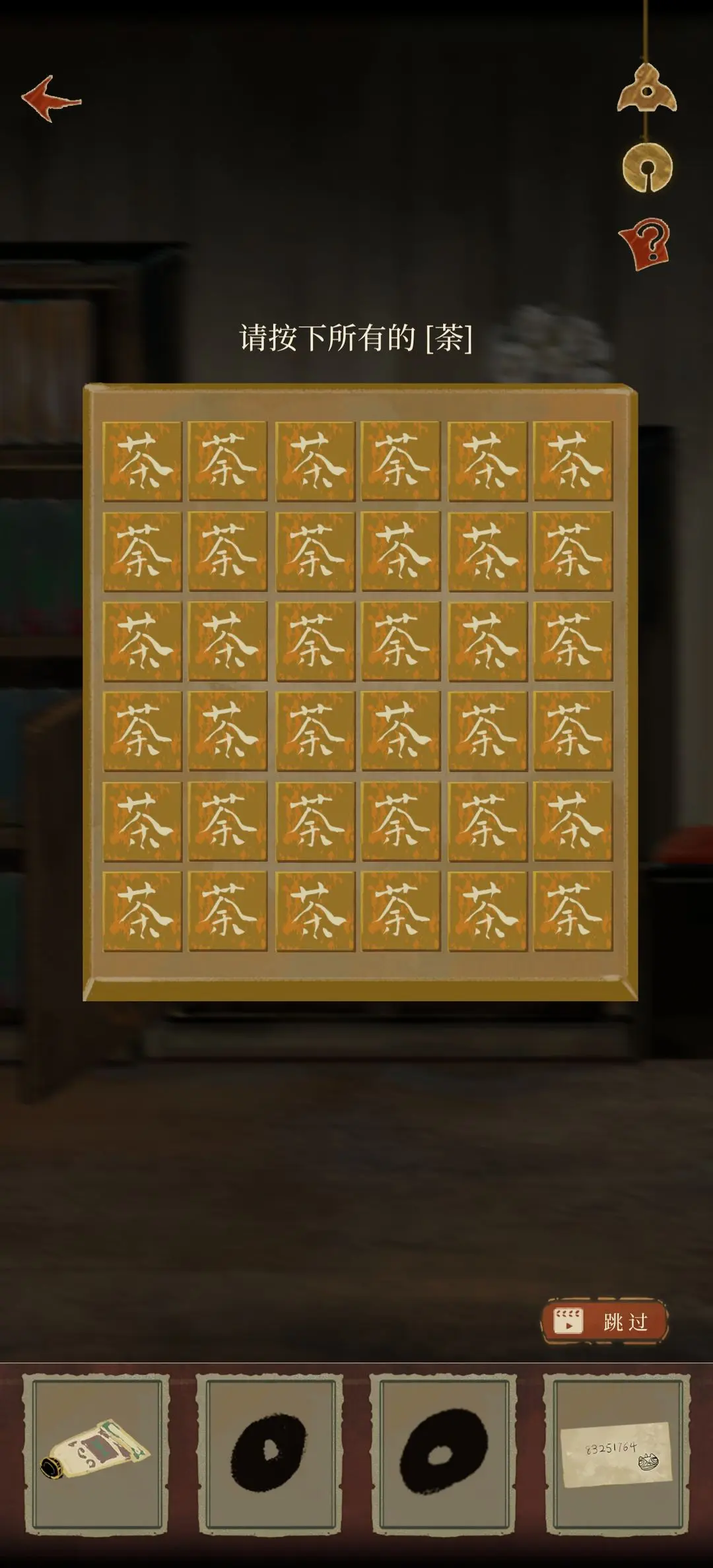 进门以后打开柜子有个小游戏(是谁看成了一键三连),就是将三个一样的块块点出来。进去以后拼手速截个图(题是随机的,所以我的截图不具有参考价值),第一次没有截到也没关系,重置以后可以再来一次,实在截不到可以一个一个点开找,再不行还可以跳过(狗头)完成以后获得鸡符咒(bushi)。