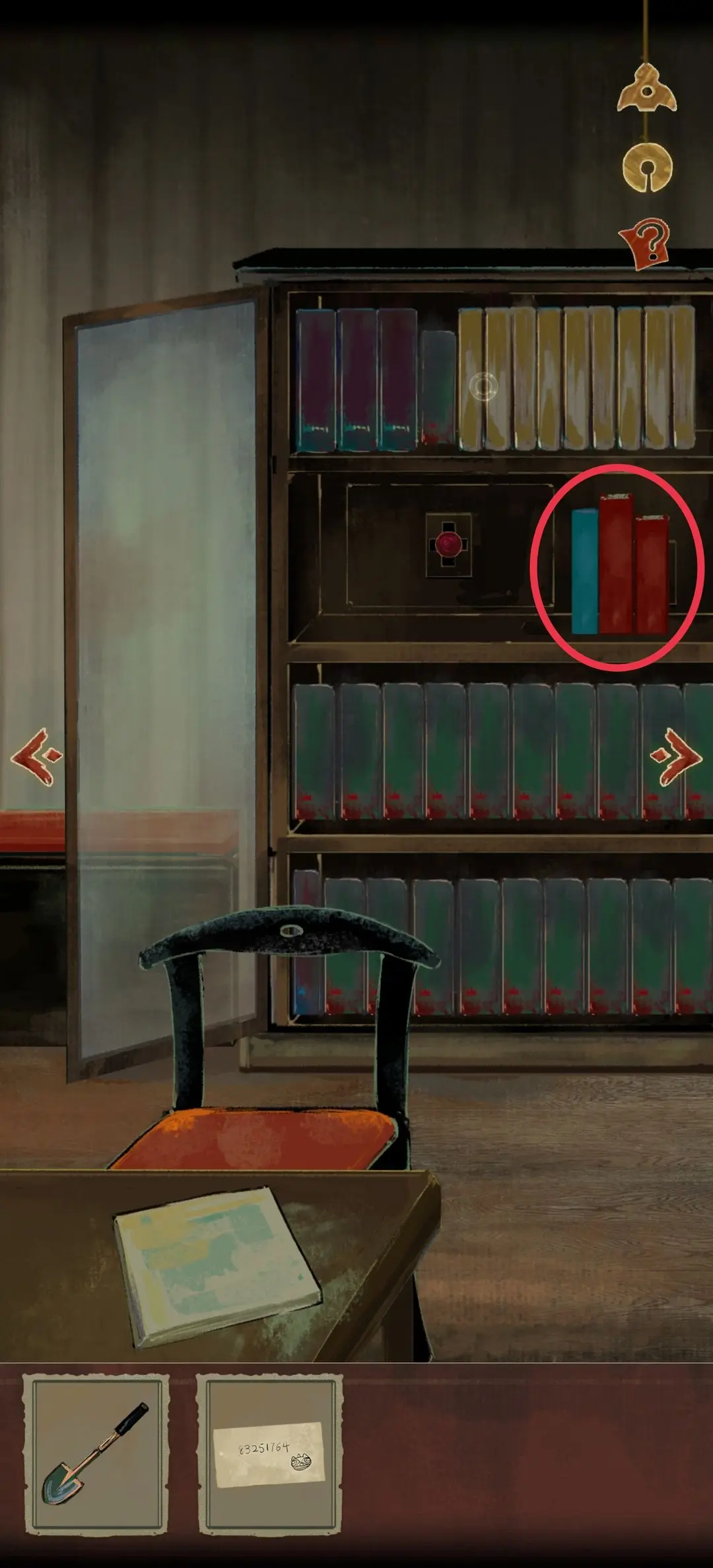 用钥匙打开柜子,这三本书都可以点开的,收集半张照片和红绿两张暗记板。