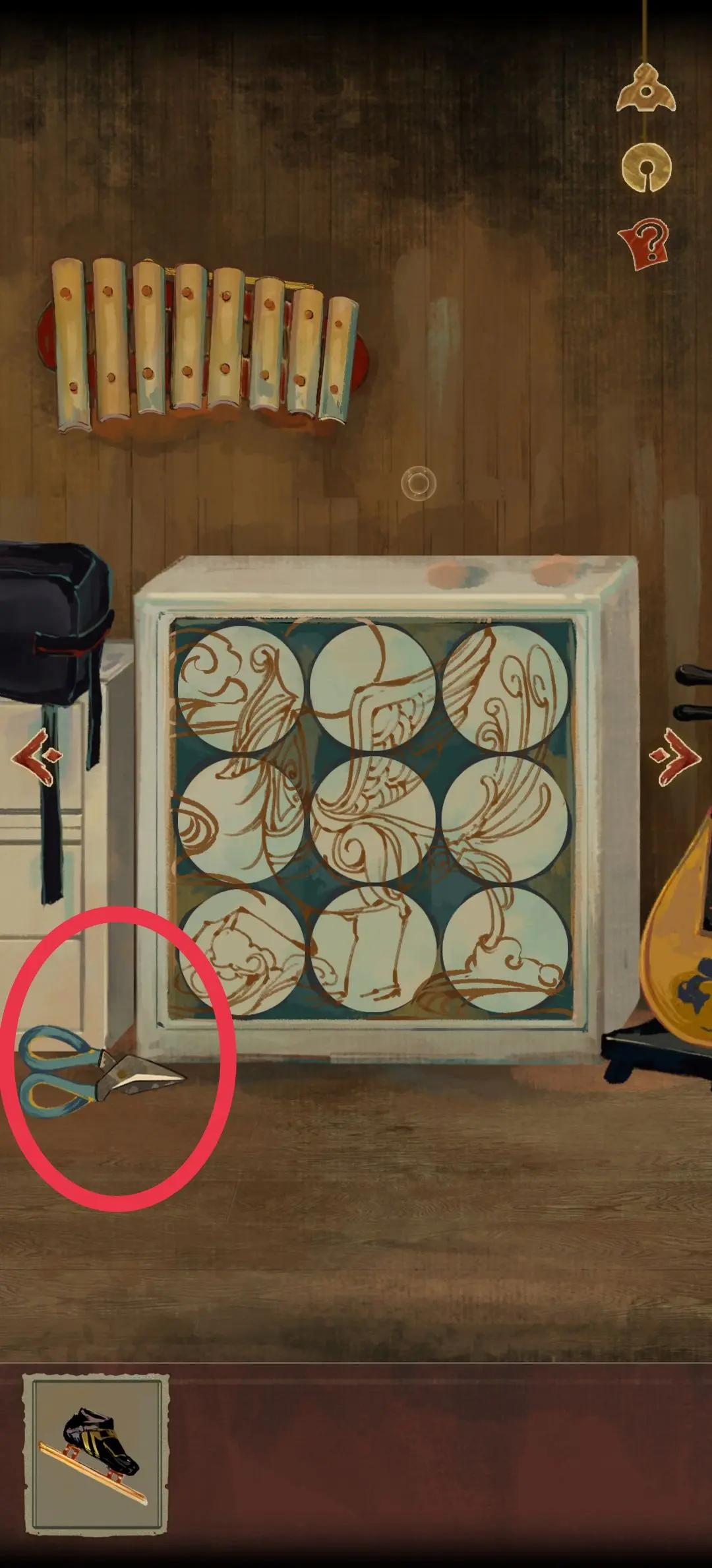 然后将锤子与木琴组合后,按35784的顺序敲击木琴,可以获得一把剪刀。