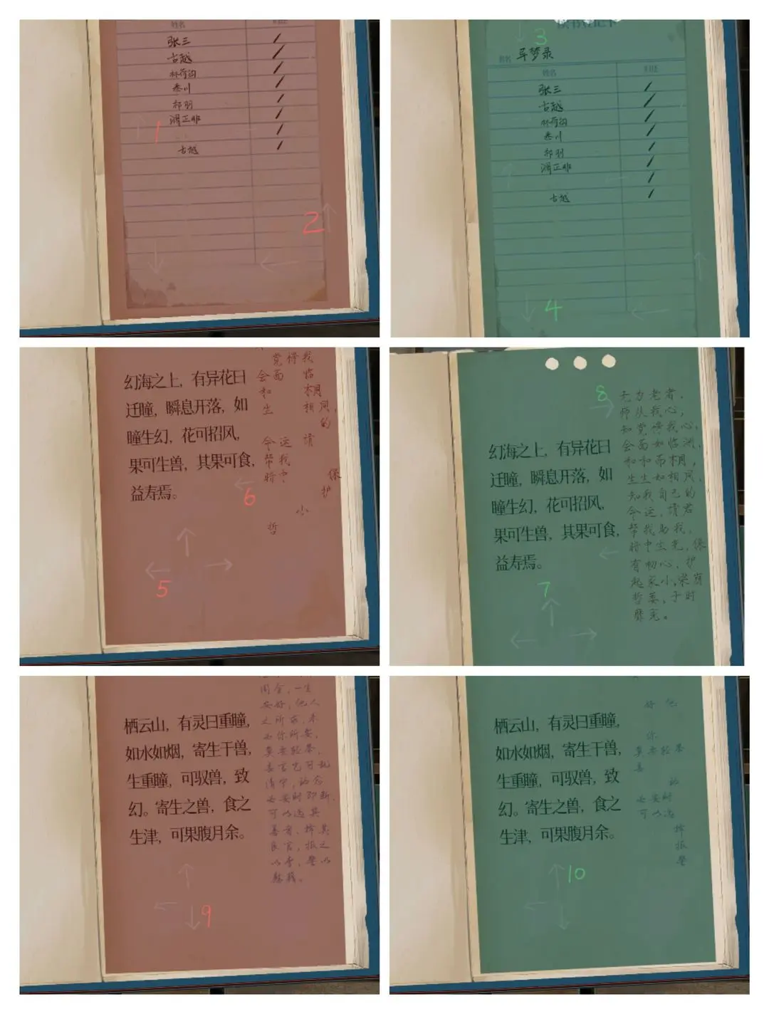 然后分别讲两张卡蒙上第一本书(忘记名字了)的前三页,获得方向密码:上上下下左左上右下上。